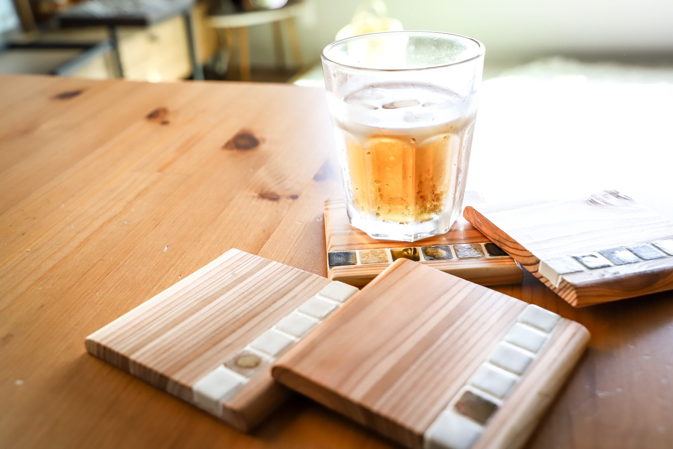 タイルと木を組み合わせたコースターは、